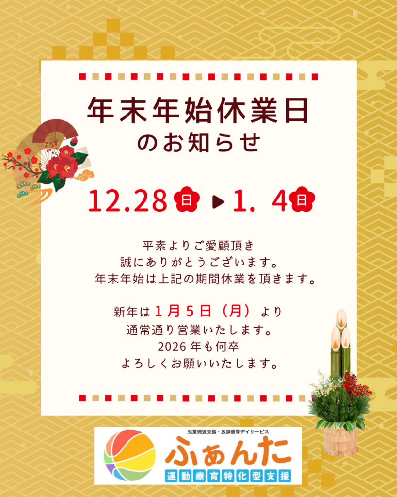 いつも児童発達支援・放課後等デイサービス ふぁんたをご利用いただき、誠にありがとうございます。